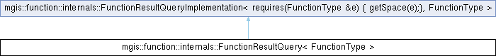 Public Types inherited from mgis::function::internals::FunctionResultQueryImplementation< requires(FunctionType &e) { getSpace(e);}, FunctionType > | |