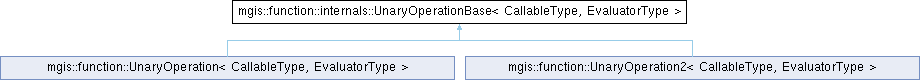 Inheritance diagram for mgis::function::internals::UnaryOperationBase< CallableType, EvaluatorType >:
